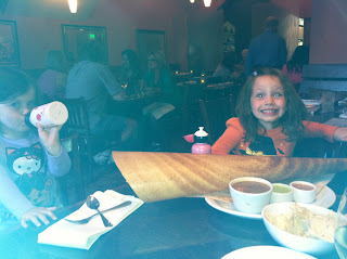 We met up with some friends at the Mini Maker Faire in the East Bay. The Maker Faire is an event that is filled with pretty much any sort of creative idea and construction that someone can come up with. This Maker Faire was specifically for kids. The girls loved riding in the giant teacup car, playing with a Jeep that was covered in Legos, and making a house out of popsicle sticks that wouldn't collapse when put on a shaking platform. Zoe decided to make a triangular house because triangles are the strongest shape.